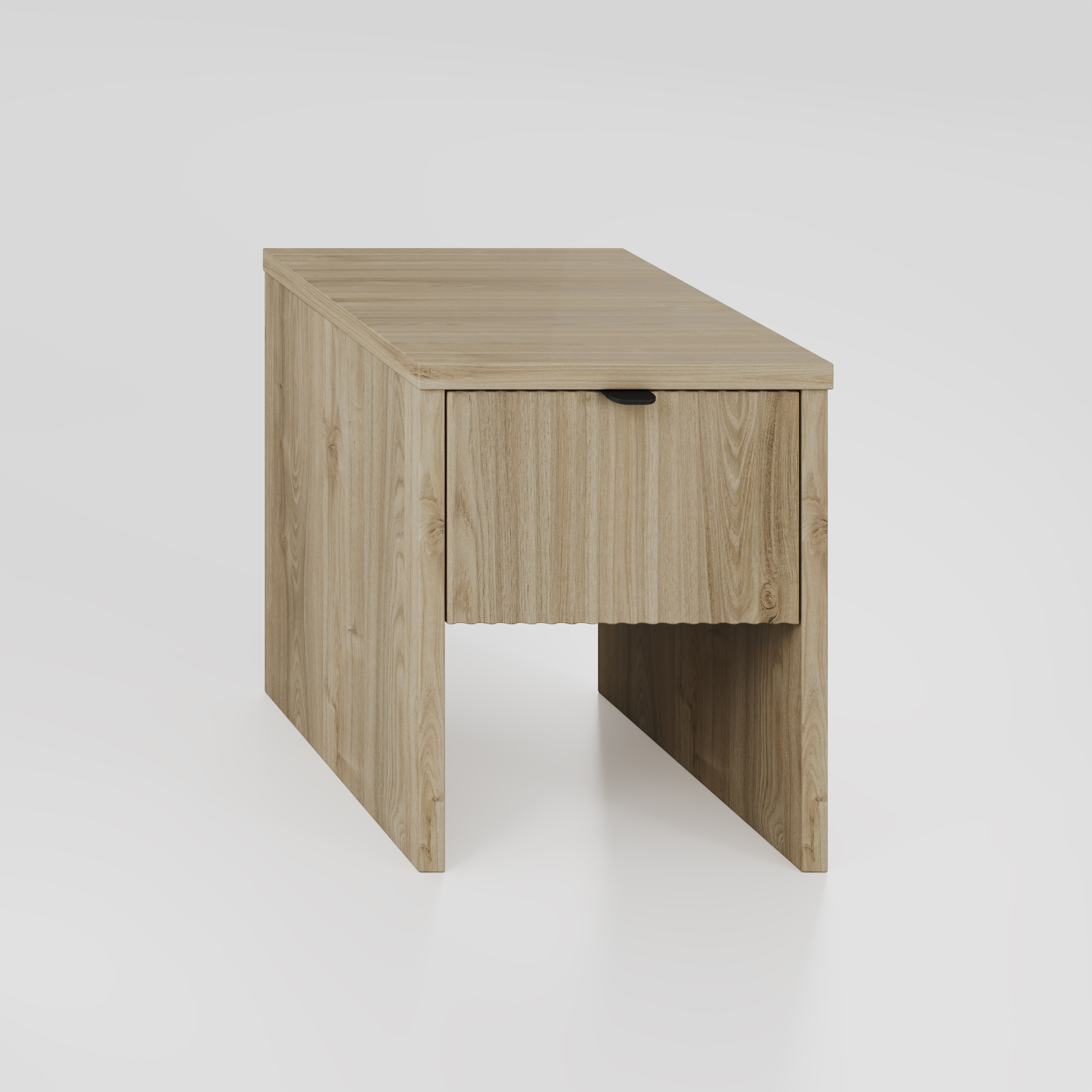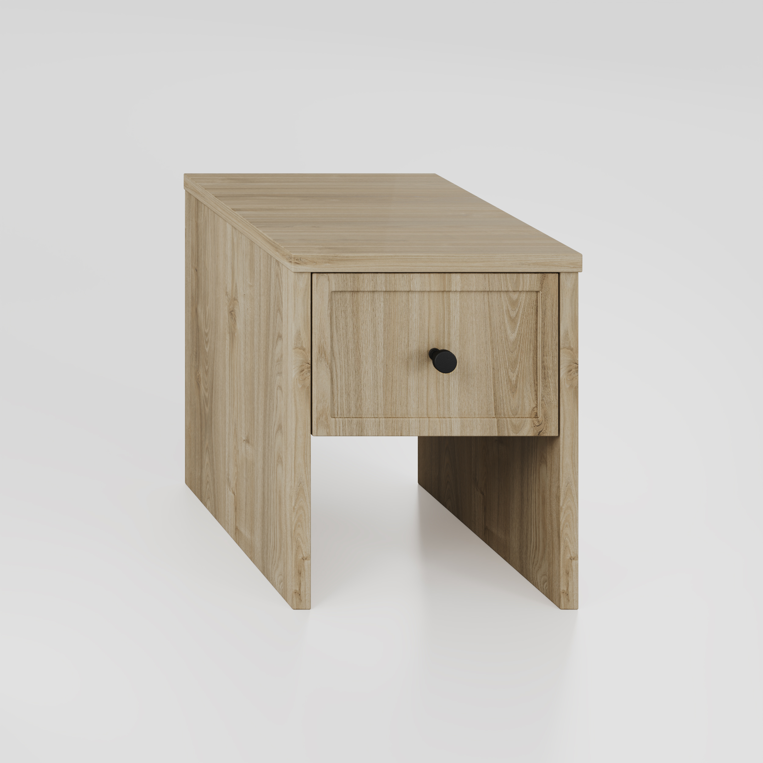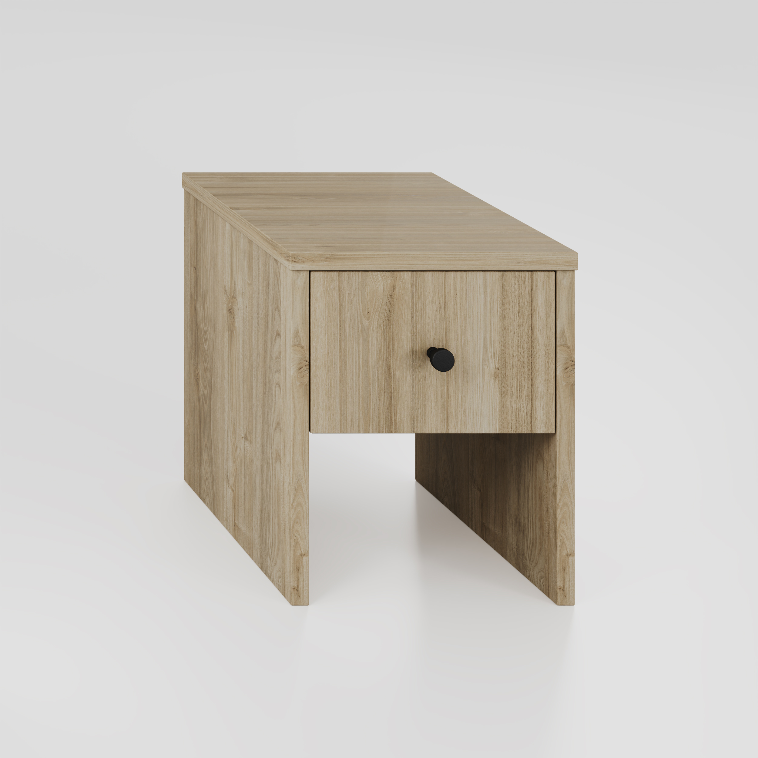 Compact storage right where guests need it. Our bedside units are built for daily use with commercial finishes and tidy cable paths—available with drawers or open shelves.