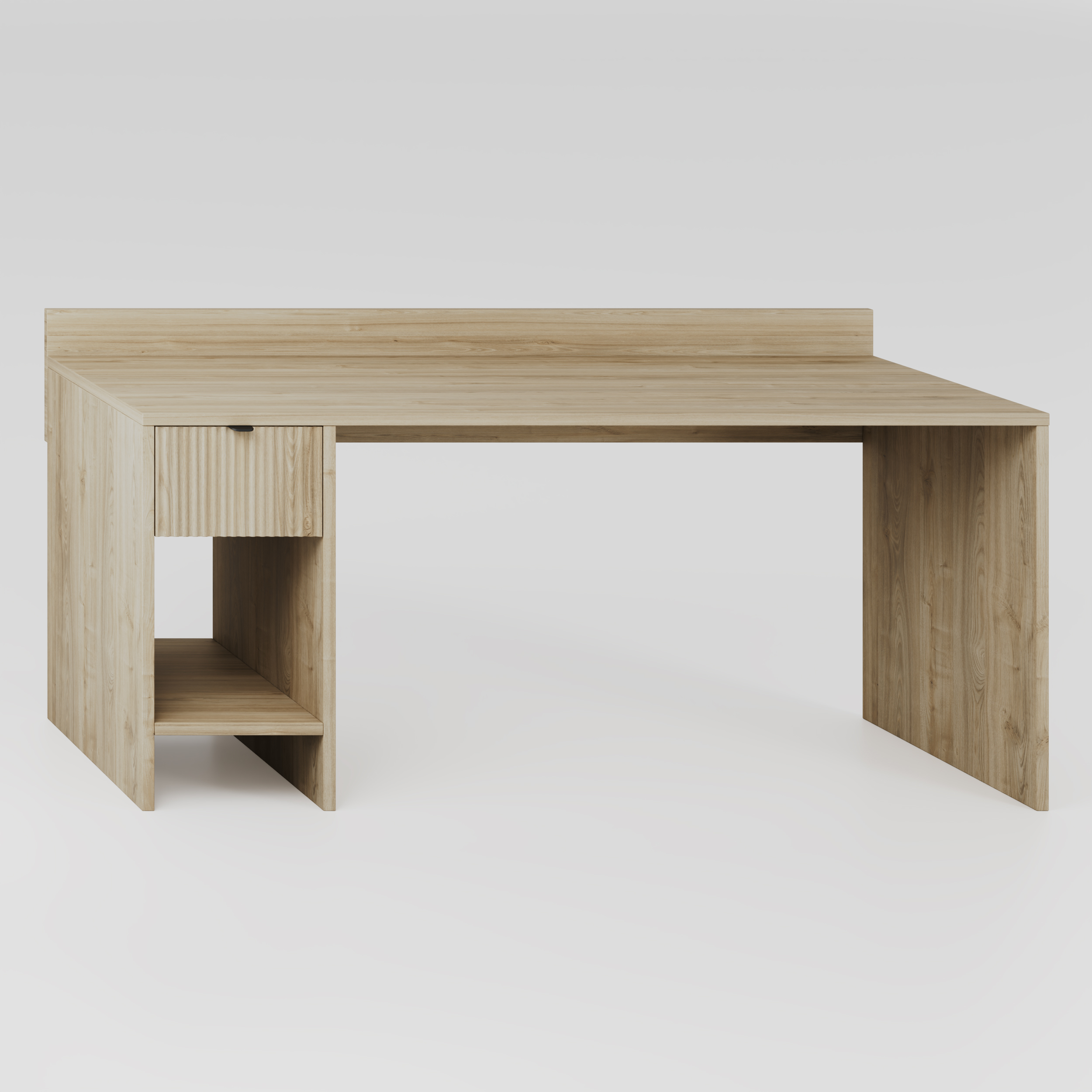 Compact desks sized for smaller rooms, with clear legroom. Fridge‑space variants keep appliances integrated without sacrificing workspace.